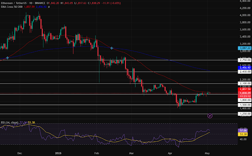以太坊价格维持在1,800美元上方