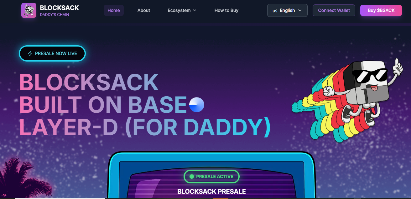 BlockSack作为基于BASE第二层网络的模因驱动生态系统,已进入加密预售讨论范畴。该项目自称“万模之祖”,叙事围绕神秘的区块链起源人物Sacktoshi展开。