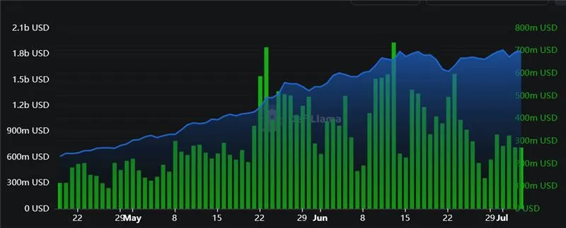 尽管近期市场出现DeFi复苏迹象,但Hyperliquid去中心化交易所(DEX)的交易量却呈现退潮之势。与5月和6月的高峰期相比尤其明显。根据DeFiLlama数据,Hyperliquid DEX交易量在5月达到7.14亿美元峰值,6月中旬前更是突破7.35亿美元,但6月末单日交易量已骤降至1.348亿美元。