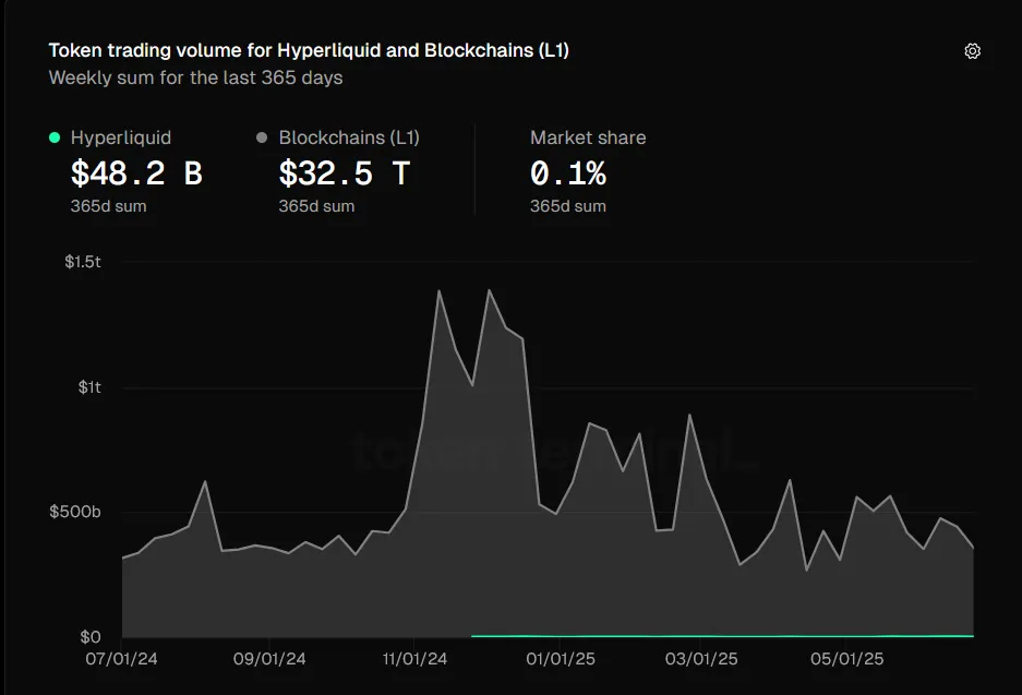 Hyperliquid代币交易量 | 数据来源:TokenTerminal