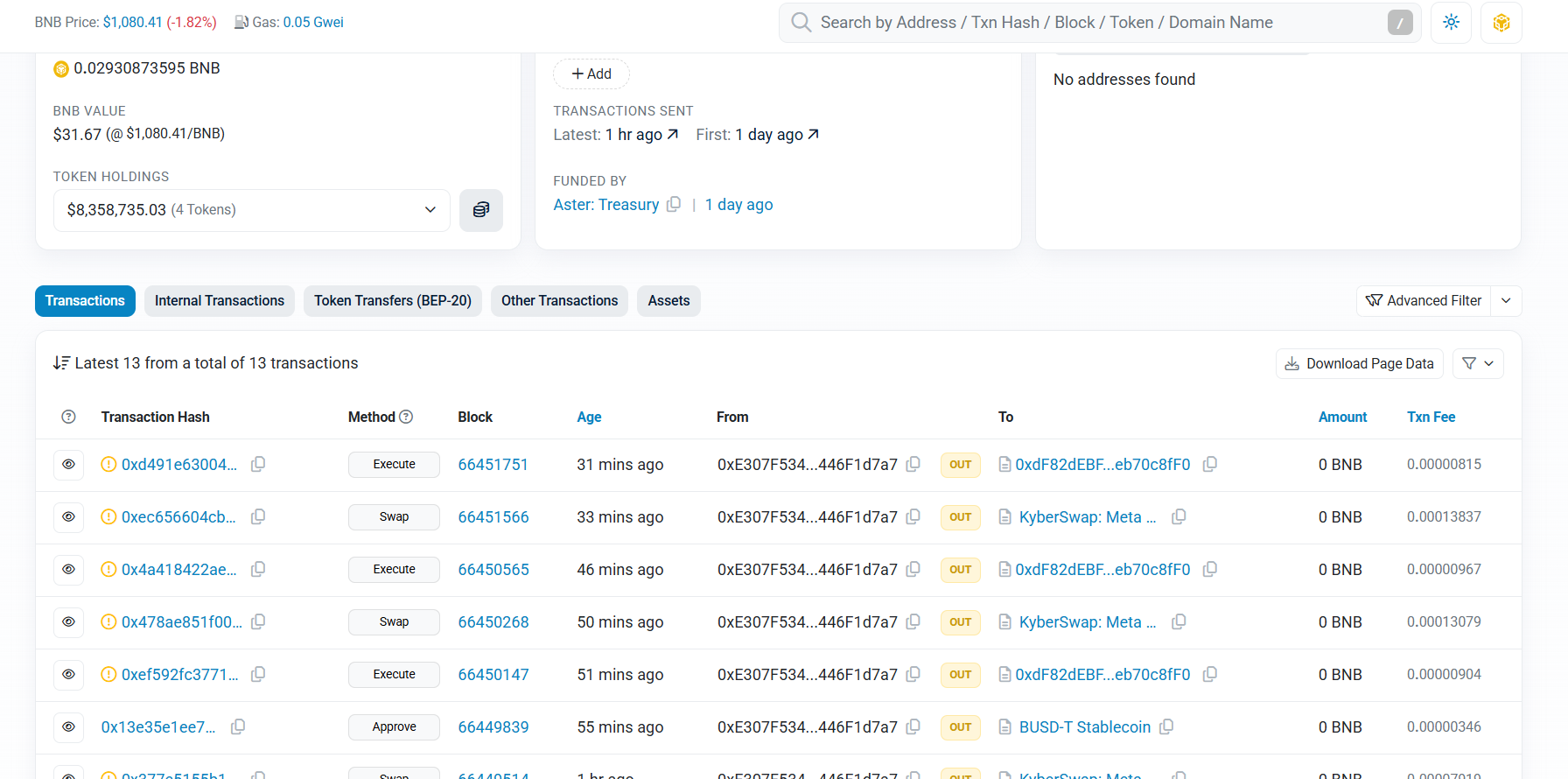 为验证真伪,可通过BSC Scan追踪地址0xE307F534EEc7256331C347Ad73E7A08446F1d7a7的活动。社区对回购进程的高度关注及透明度促使Aster提前披露回购地址,旨在进一步巩固社区信任。
