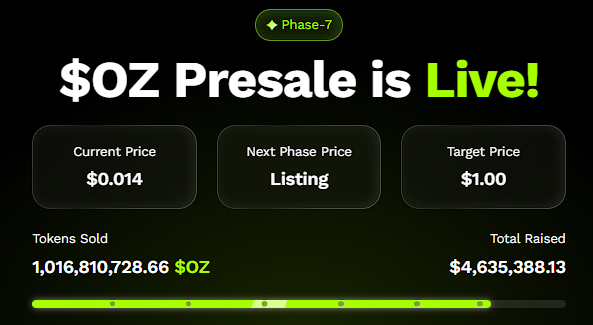 随着Ozak AI售出超10亿代币并筹集逾480万美元,公售吸引力持续加速。早期投资者认识到,Ozak AI的低市值与先进技术架构相结合,为交易所上市后的指数级增长创造了难得机遇。该项目没有传统阻力位限制早期增长,使得在启动阶段能够实现近乎无限制的价格发现。快速的社区扩张、强大的合作伙伴关系及明确的实用价值定位,使Ozak AI成为下轮牛市中潜在50-100倍突破的有力竞争者。
