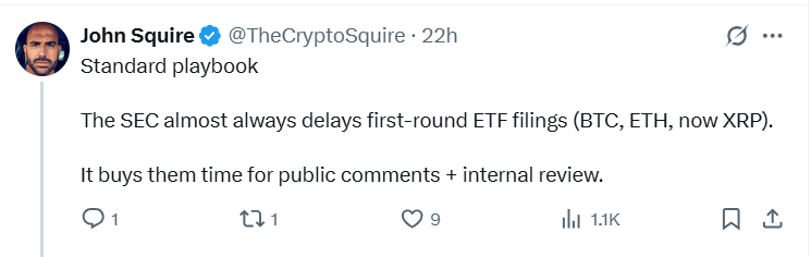 Digitalk CEO兼XRP爱好者John Squire揭示了审批延迟的潜在原因。针对富兰克林XRP ETF决策延期,Squire认为这可能是美国SEC的战略举措,旨在为监管机构争取更多时间进行"公众意见征询+内部审查"。此外,尽管Ripple在与SEC的诉讼中取得部分胜利,但SEC仍以"诉讼正在进行"为由可能导致了延迟。