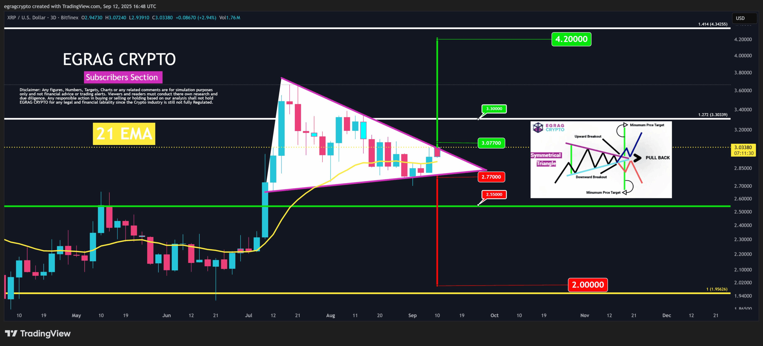 近期XRP相关消息显示,市场对Ripple ETF可能获批的乐观情绪(此前普遍预期将在9月12日周五通过)进一步推高了市场热情。不过本周REX-Osprey XRP ETF的审批延迟引发了社区热议。对此,多位顶级市场专家分享了他们对潜在上市时间线的关键见解,这让热切等待该投资工具在美国市场落地的参与者稍感宽慰。在此背景下,专家们对XRP价格做出了看涨预测。