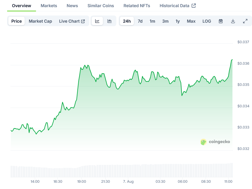 • 代币在0.032美元关键支撑位反弹,有望冲击0.040美元(潜在涨幅13%)