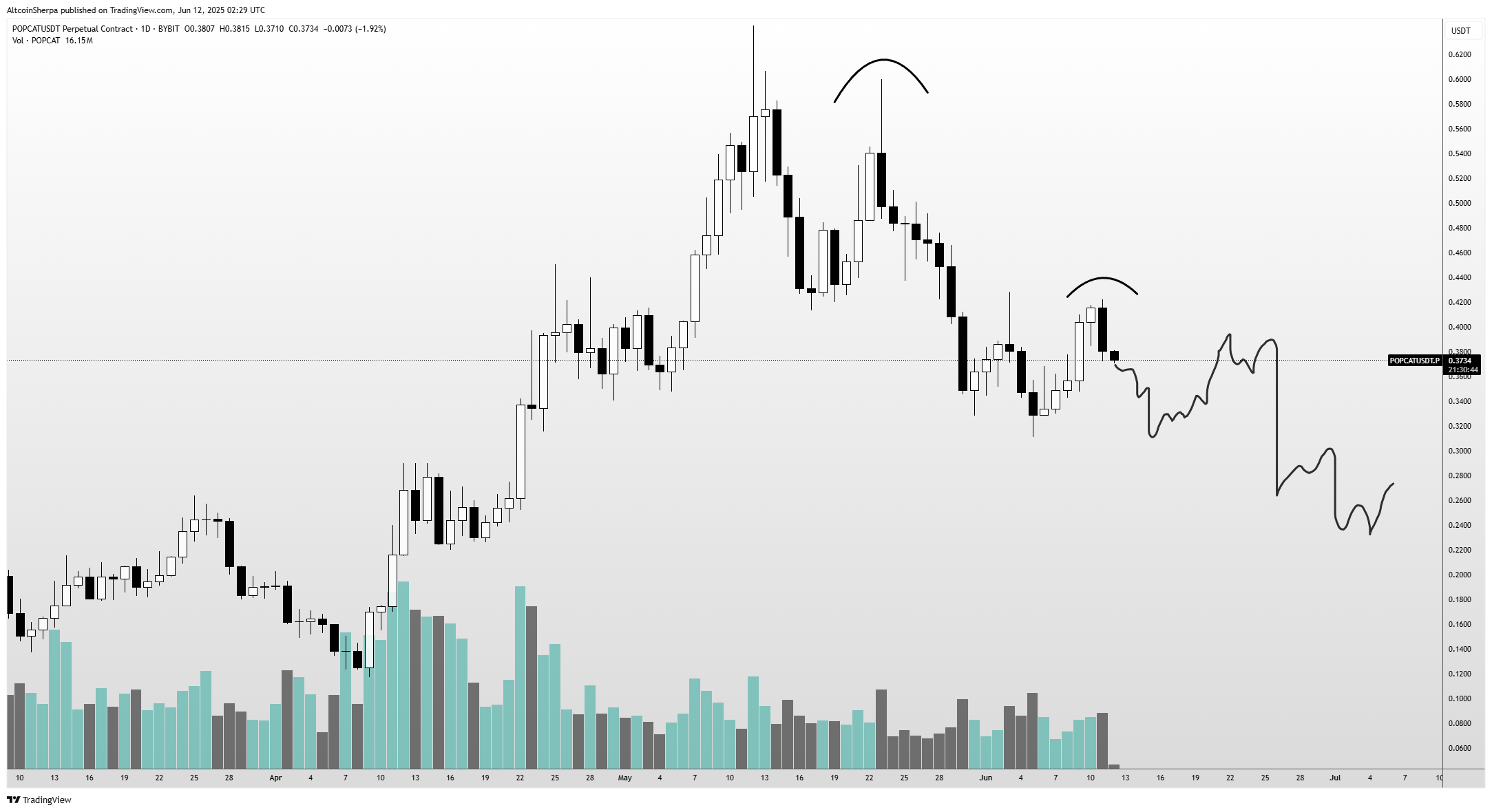 化名分析师AltcoinSherpa以POPCAT和WIF Coin为例,警告这些加密货币可能面临30-50%的新一轮跌幅。