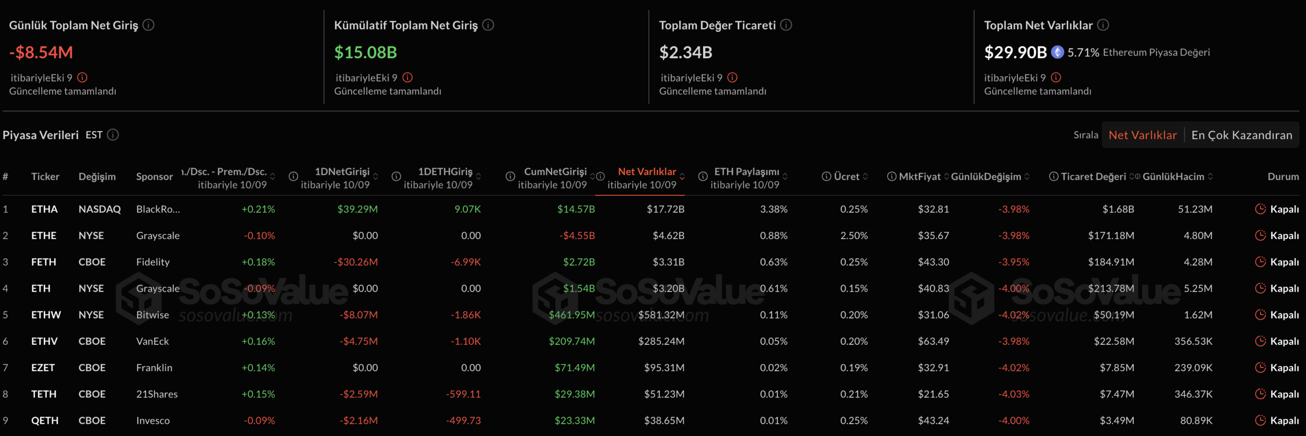 2025年10月9日:美国现货以太坊ETF结束八日资金流入