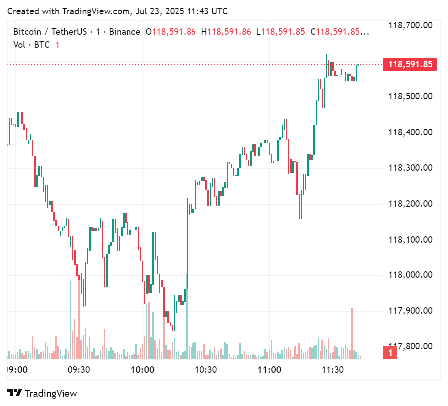 截至当前,Vanadi Coffee共持有76枚BTC,现值超900万美元。据crypto.news数据显示,BTC价格已低于Vanadi最初购入价。过去24小时内,这个市值最大的加密货币下跌0.36%,现报118,616美元。在最近交易日中,其价格曾触及120,222美元峰值,距历史高点122,838美元仅差约2000美元。