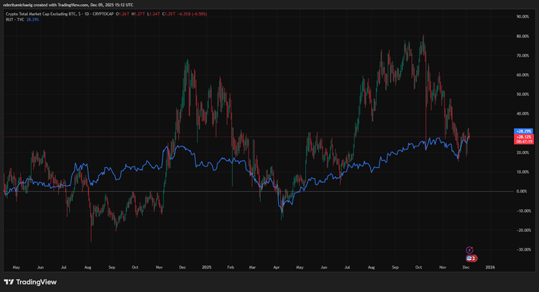 加密货币分析师Dan Gambardello近期指出罗素2000指数与加密市场山寨币之间存在有趣关联。