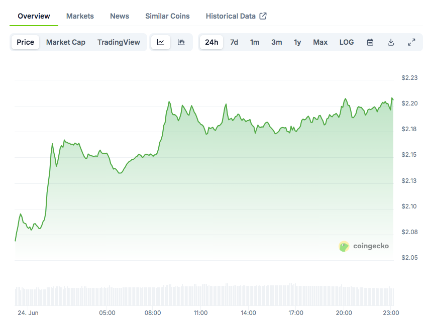 CoinGecko数据显示,XRP现报2.20美元,24小时上涨6.77%,七日涨幅1.11%。