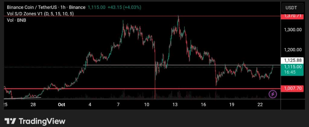 短期价格走势显示1,125美元附近存在阻力。open4profit分析指出,BNB多次未能突破1,007-1,125美元关键阻力区,该区间自本月价格从1,300美元上方回调后一直充当天花板。