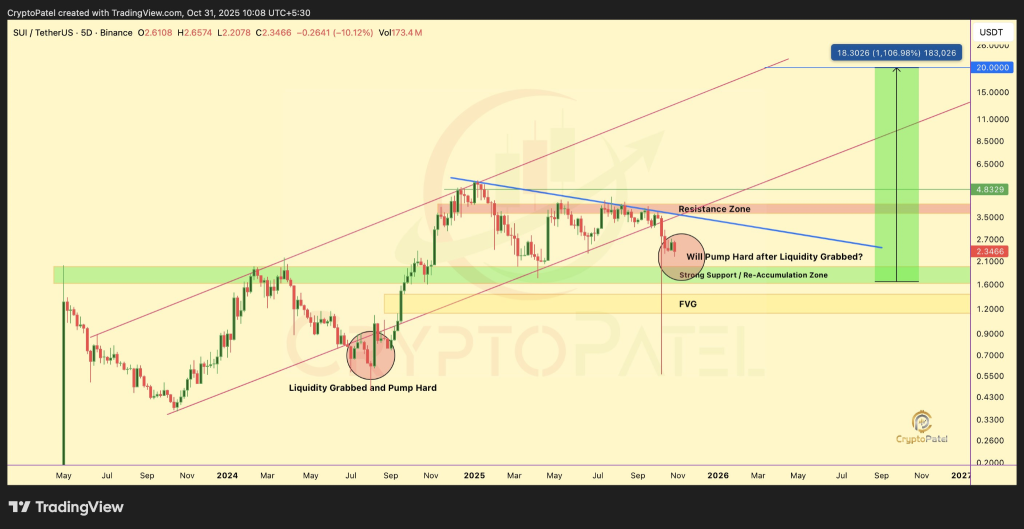 Sui(SUI)再次测试2.10美元至1.80美元的关键支撑区域,该区间曾多次引发价格上涨。市场观察者正密切关注流动性变化,部分交易员认为可能酝酿向20美元目标的行情。