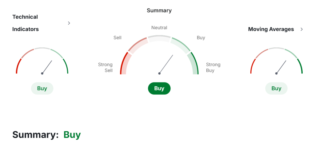 关键均线均呈多头格局:50日均线(SMA3.33美元/EMA3.35美元)、100日均线(SMA3.27美元/EMA3.30美元)、200日均线(SMA3.24美元/EMA3.29美元)均指向持续上行趋势。