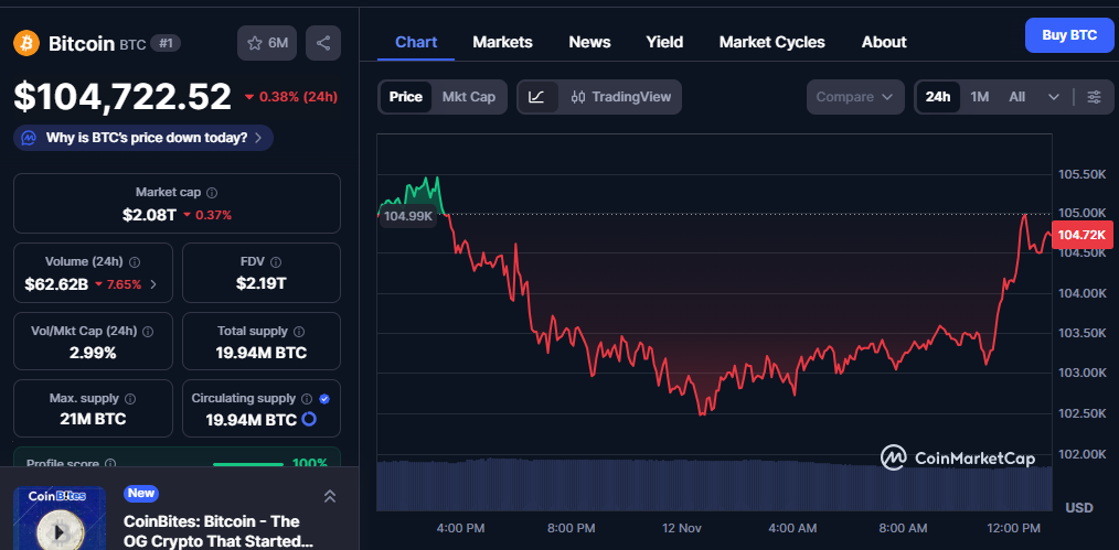 105K美元仍是比特币的关键分水岭,突破该阻力可能预示看涨动能转换。反之若无法获得支撑,回落至104K美元也并不意外。交易者正紧密追踪价格变化以判断突破或回调的可能性。