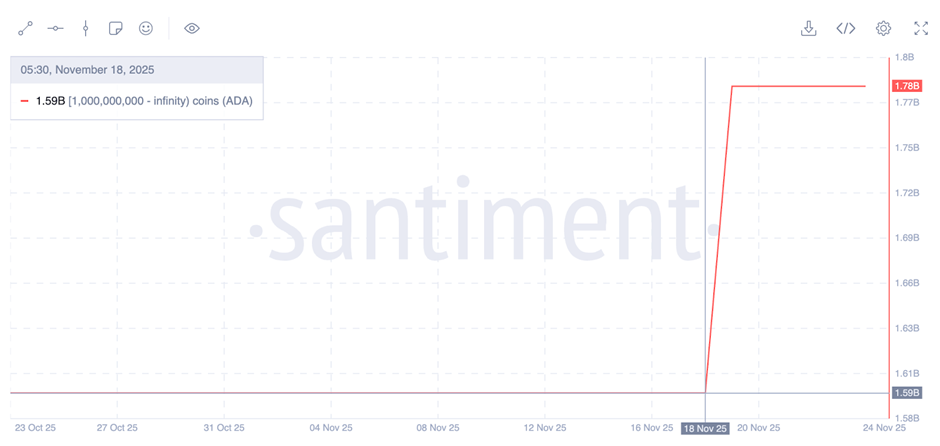 大额持有者增持7700万美元ADA,暗示早期复苏力量。