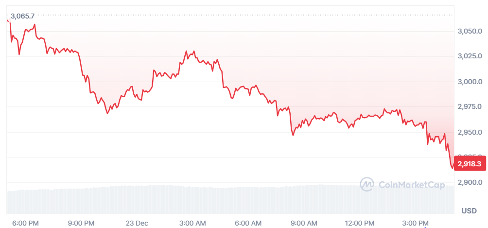 ETH价格从12月22日的3,060美元高位回落至当前水平。