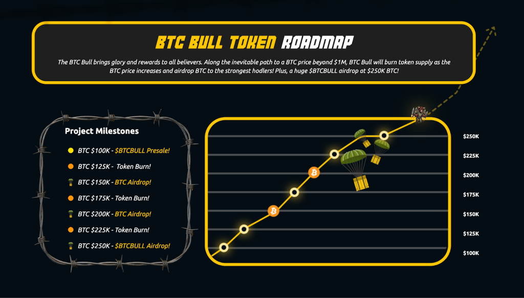 这个系统特别吸引人的地方在于,15万美元和20万美元里程碑的空投将向代币持有者分发实际的比特币,这代表了投资者无需直接购买即可被动积累世界上表现最佳资产的机会。当比特币达到25万美元时,BTC Bull Token项目还将向BTCBULL持有者进行大量BTCBULL代币空投。