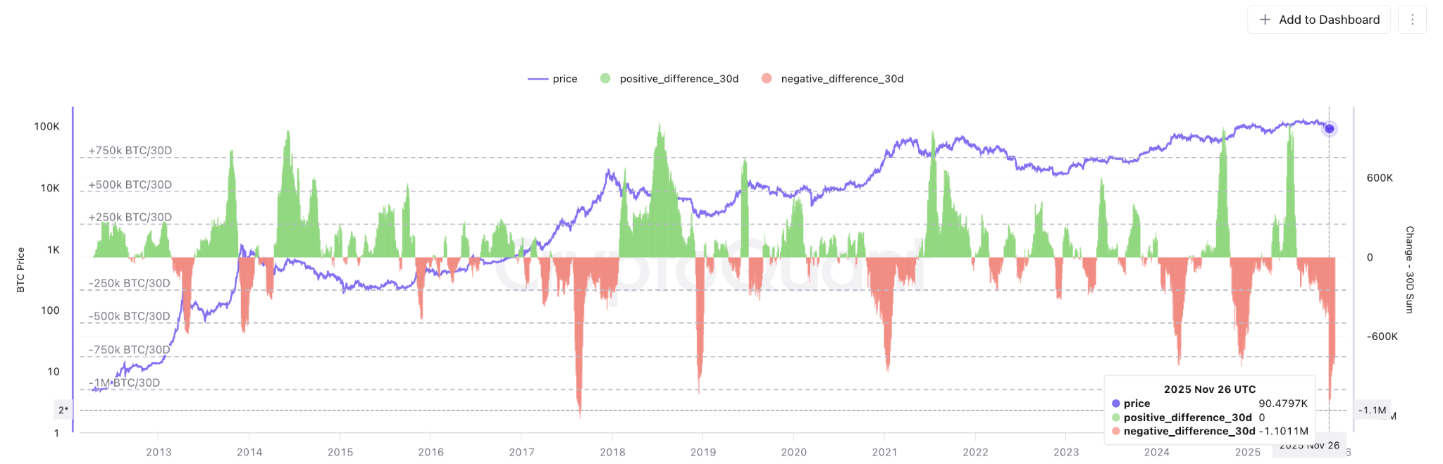若历史重演,长期持有者或将当前84,000美元的币价下跌视为增持契机,从而在未来数月推动价格再创新高。