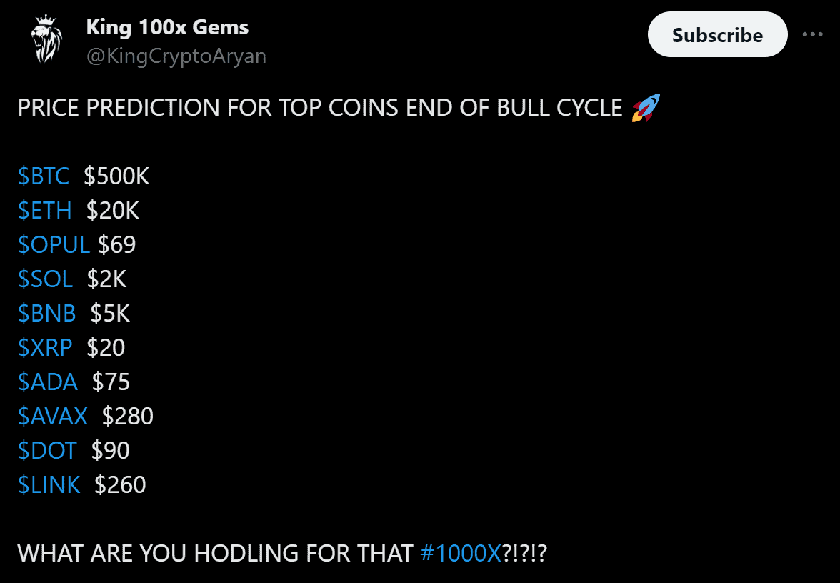 对于一个大胆的ADA价格预测,受欢迎的Crypto X分析师King Crypto Aryan最近提出了75美元的目标,预计在2025年牛市周期的顶部实现。为了ADA价格能够如此飙升,他预计2025年比特币将达到50万美元。