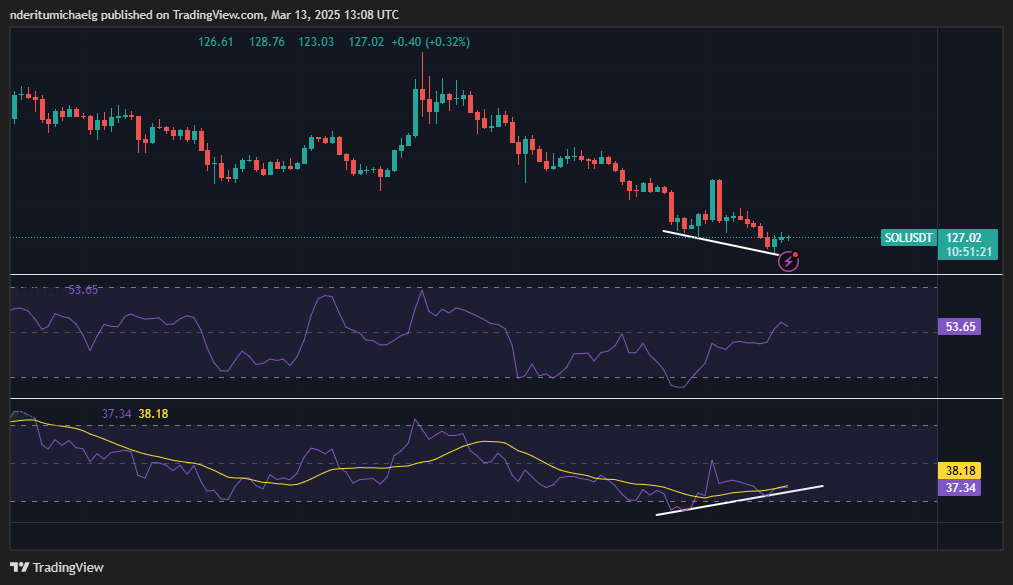 除了在关键支撑位进行盘整外,SOL价格还显示出其他看涨信号。例如,它形成了看涨的价格-RSI背离,即价格创出较低的低点,而RSI则创出较高的低点。