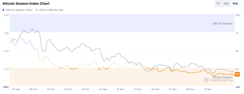 山寨币主导率用于衡量山寨币相对于比特币的表现,今年曾跌至15%的年度低点。尽管出现下滑,山寨币始终未跌破关键支撑位,展现出良好的市场韧性。