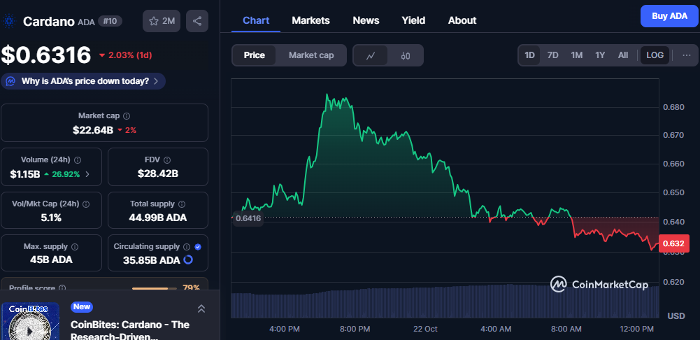 卡尔达诺当前市值226.7亿美元,与市场整体调整步调一致。尽管价格下行,其24小时交易量逆势增至11.5亿美元,5.1%的市值换手率凸显市场参与热度不减。