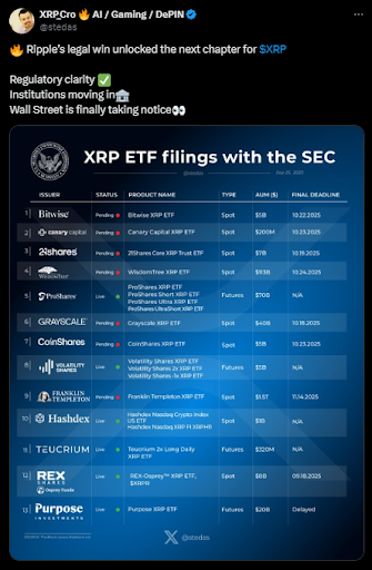 XRP ETF申请重塑机构预期