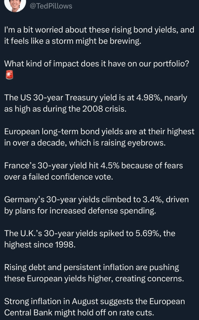 美国30年期国债收益率已逼近4.98%,英国同期国债达5.69%,法国和德国分别维持在4.5%和3.4%左右。这些数字相较往年处于高位,意味着投资者能从国债获得更丰厚的安全收益,自然削弱了加密市场的高风险吸引力。