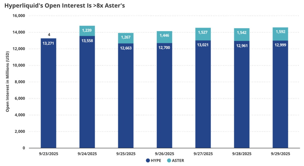 在9月23-29日当周,HYPE未平仓合约稳定在130亿美元附近,显示机构参与度坚挺。而ASTER未平仓合约24小时内下跌7.74%至11.2亿美元,暗示资金外流迹象。