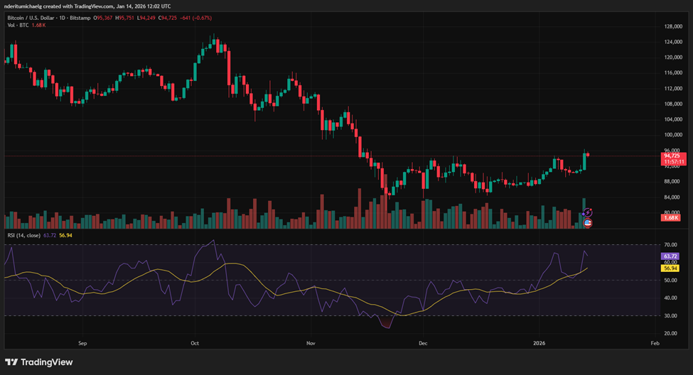 得益于交易时段内6%的看涨走势,比特币价格在周二飙升至96,474美元的高位。这股看涨动能标志着其首次对突破两个月来深陷的底部区间,做出了重大尝试。