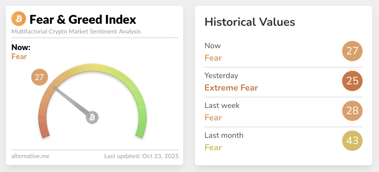 对加密货币投资者而言,主要问题在于该消息的心理影响。近期市场趋势显示,投资者将每次上涨视为卖出机会,由于宏观经济不确定性而保持谨慎态度。加密货币恐惧与贪婪指数维持在25水平,接近"极度恐惧"阈值。