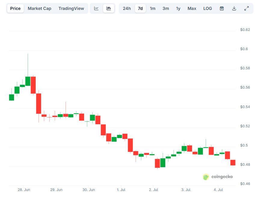 加密货币市场在过去七天强势反弹,部分主流数字资产实现两位数涨幅。但Pi网络(PI)却逆势下跌,截至发稿时交易价约为0.48美元,周跌幅达13%,月跌幅高达26%。