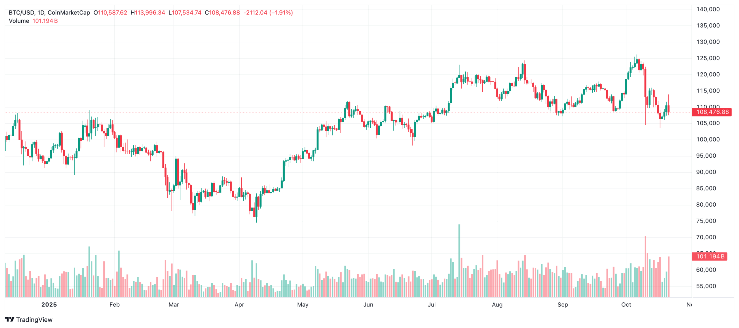 10月10日,比特币价格从12.2万美元暴跌至10.2万美元。这次下跌正值美国总统特朗普宣布将所有中国进口商品的关税从30%提高到130%之后。中国限制稀土出口的决定进一步削弱了全球风险偏好,而