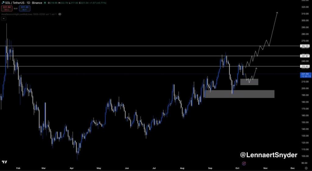Solana从193美元的周线支撑位完美反弹,维持上升轨迹。只要价格保持在这一关键支撑位上方,市场情绪仍有利于多头交易者。若价格回调至213美元附近,可能成为寻求确认多头交易者的理想入场点。交易者正密切监控这些价位以寻找持续走强的信号。