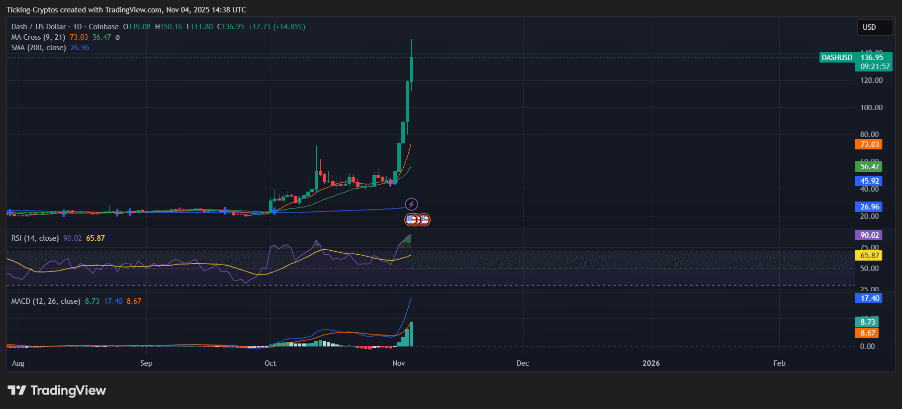 这种市场环境通常会惩罚杠杆交易。正因如此,DASH的强势表现格外醒目——同时也提醒交易者需警惕价格快速均值回归的风险。