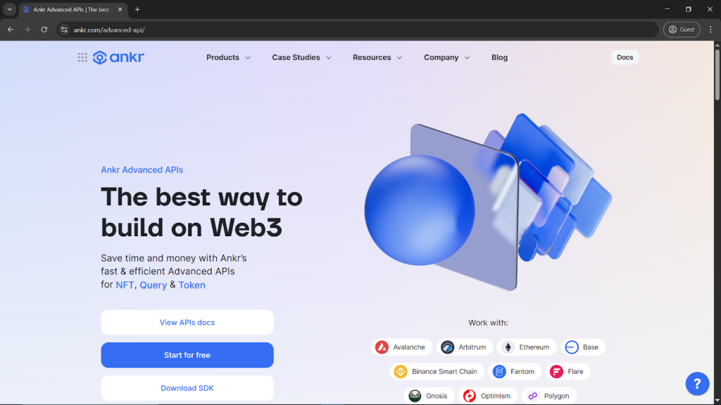 Ankr提供去中心化节点托管和API解决方案,支持:提高可靠性的分布式基础设施、REST和WebSocket连接、免费和高级服务计划。Ankr是去中心化节点托管的不错选择,但仍缺乏Bitquery的分析和查询能力,使其更适合一般基础设施支持而非深入的数据分析。