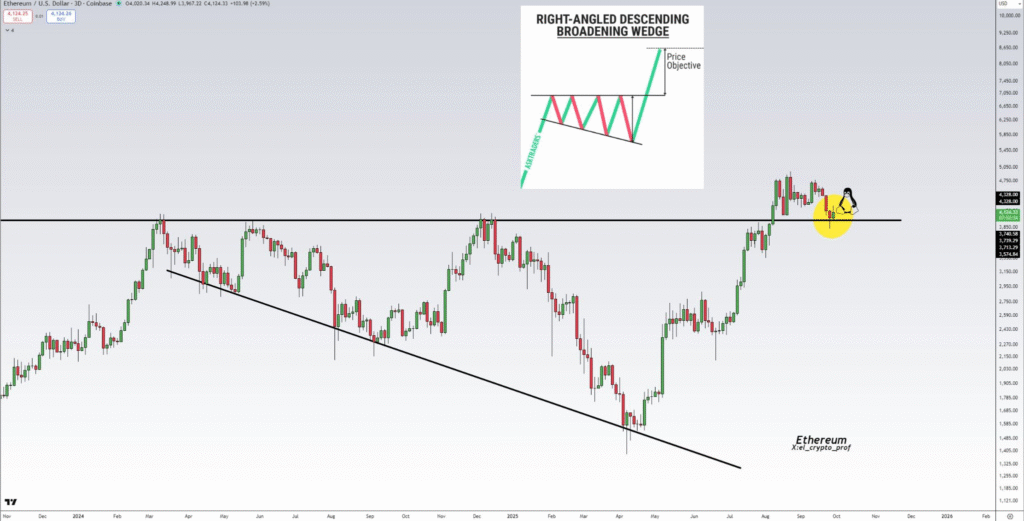 以太坊和K线图显示出直角下降扩散楔形形态,该技术形态通常在整理阶段后预示突破将至。加密社区普遍看好这一入价走势,认为突破 taste300美元可能激发以太坊更强劲的上行动能。