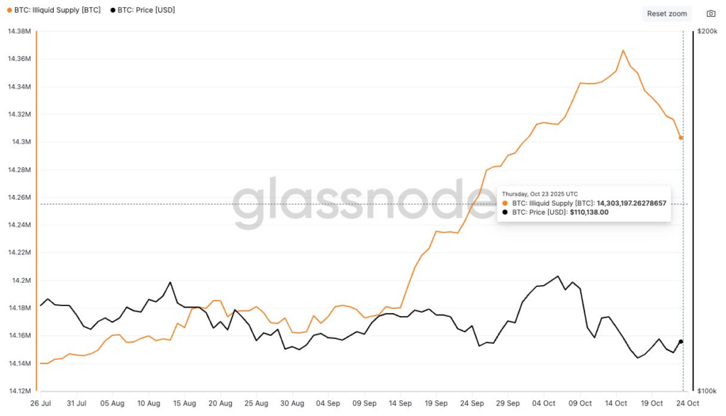 • 比特币非流动性供应下降反映持有人信心减弱,抛压再现