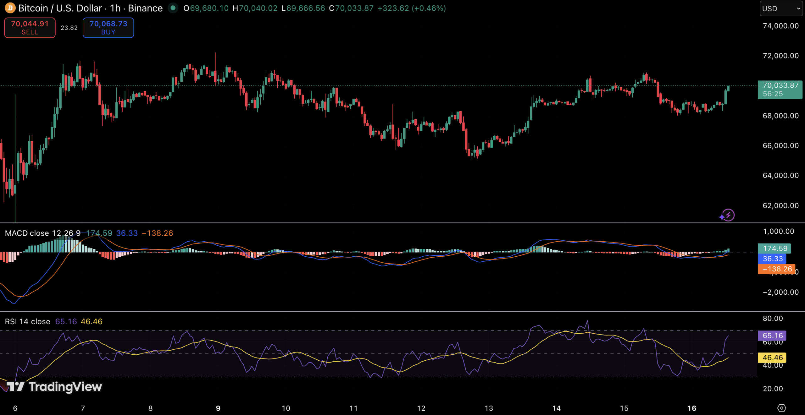 从技术角度看,收复70,000美元意味着夺回了关键整数关口——该位置已由支撑转为阻力。近期上涨伴随MACD柱状线强化与RSI向看涨区域回升,暗示短期动能正在改善。