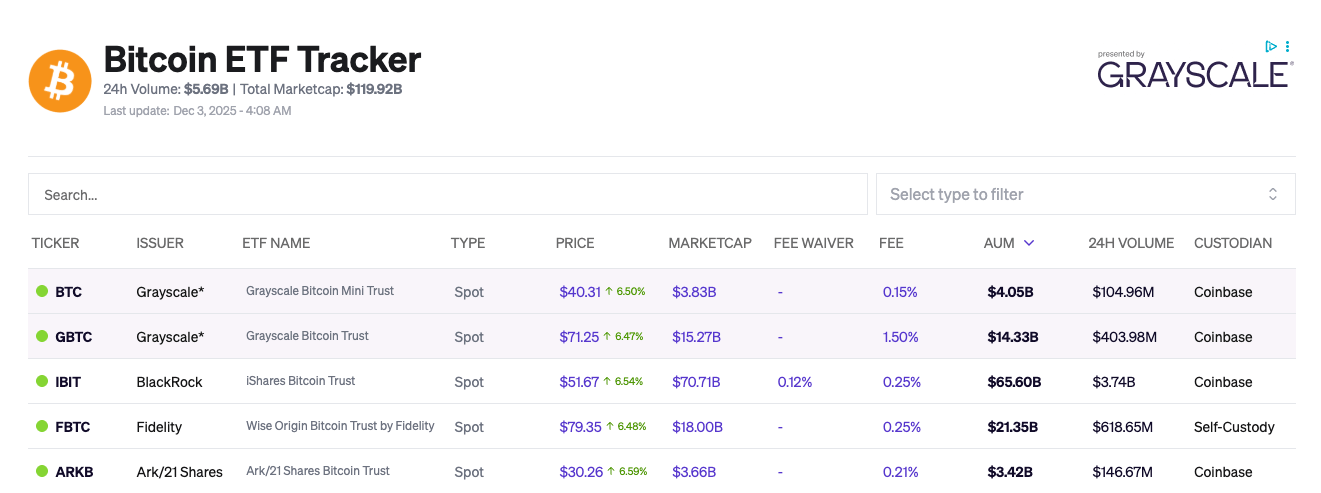 目前,灰度、贝莱德和富达等公司领跑这些ETF,其总市值已达1199.2亿美元。