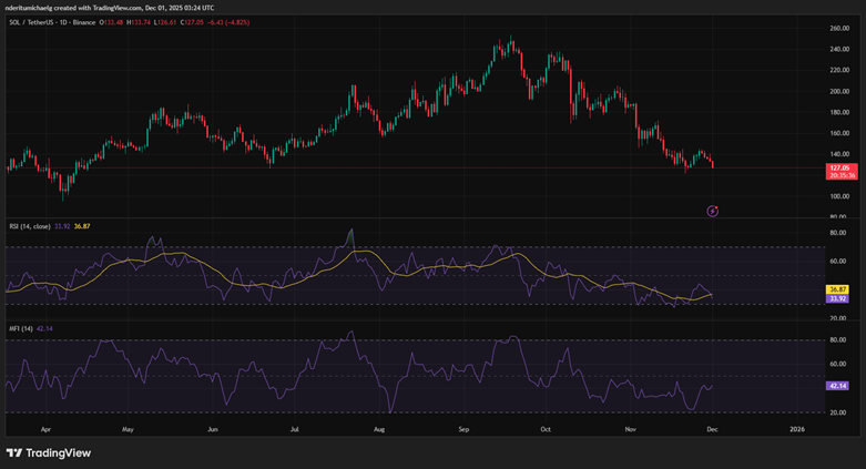 就市场需求而言,SOL在十一月的价格走势明显偏弱,当月收盘价较月初下跌约28%。