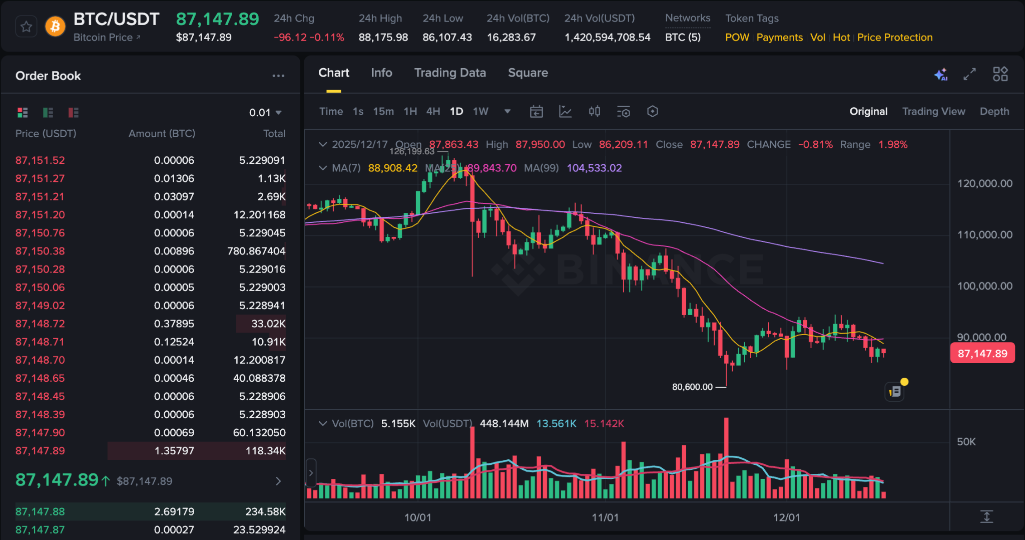 比特币跌破87000美元印证了当前周期已处于末段。在此价位,上行空间有限而下行风险依然严峻。对新进资金而言,风险回报比正变得越来越不友好。