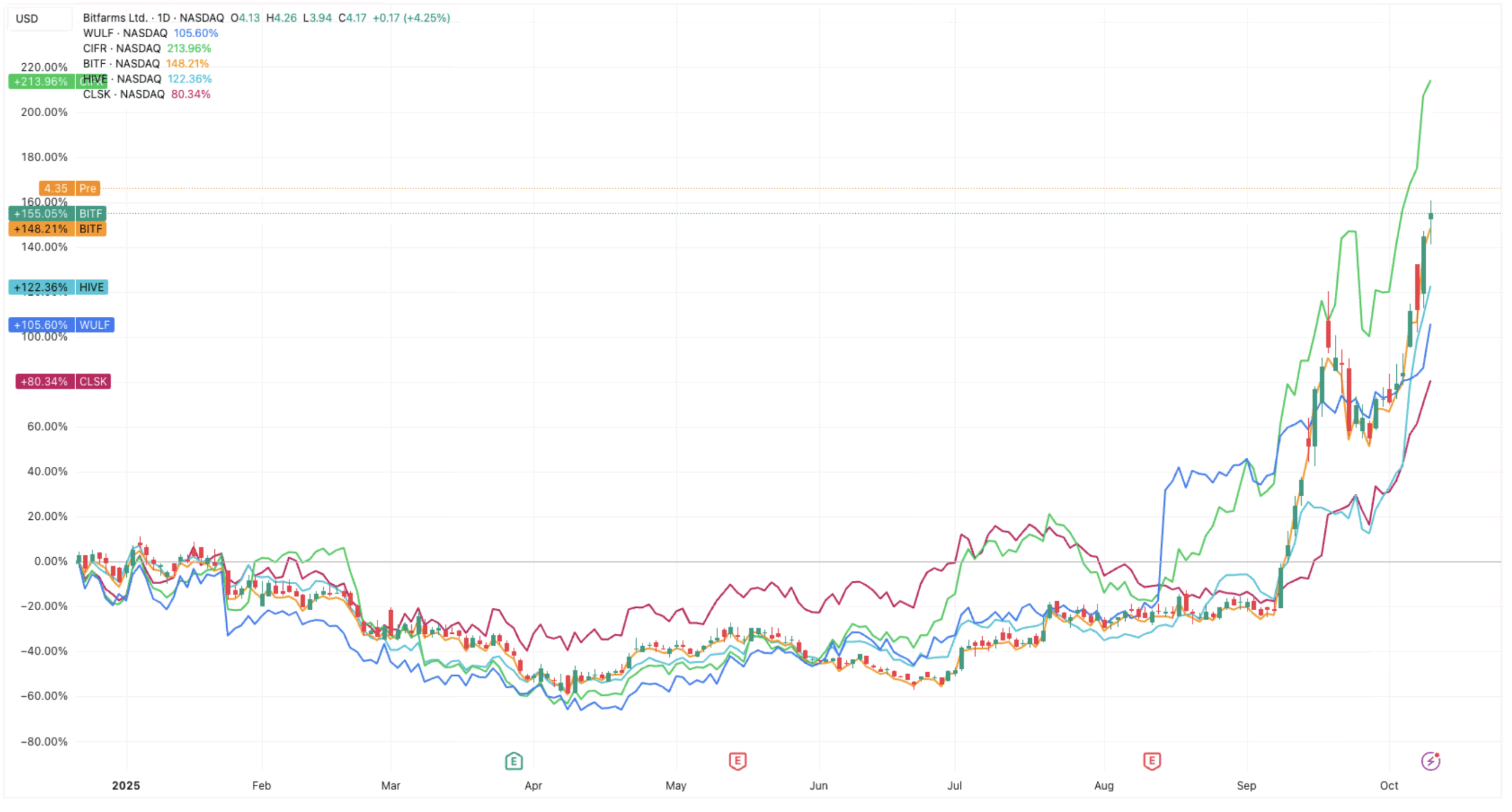 盘前交易中,TerraWulf股价上涨约5%,CleanSpark、Cipher Mining和Bitfarms涨幅在2-4%区间。市场分析指出,尽管比特币在创下126,200美元历史高点后进入盘整,但矿企向AI基础设施转型的规划持续获得资本青睐。
