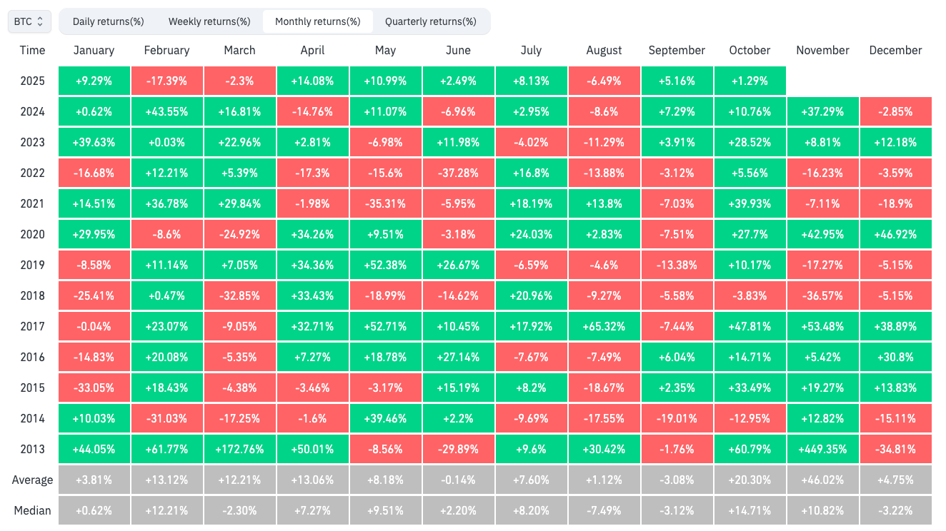 尽管比特币10月表现参差,但避免了重大月度亏损,收盘价较开盘价仅高出1%。这种韧性为通常看涨的11月奠定基础,"增长十一月"预期正在交易员中形成共识。
