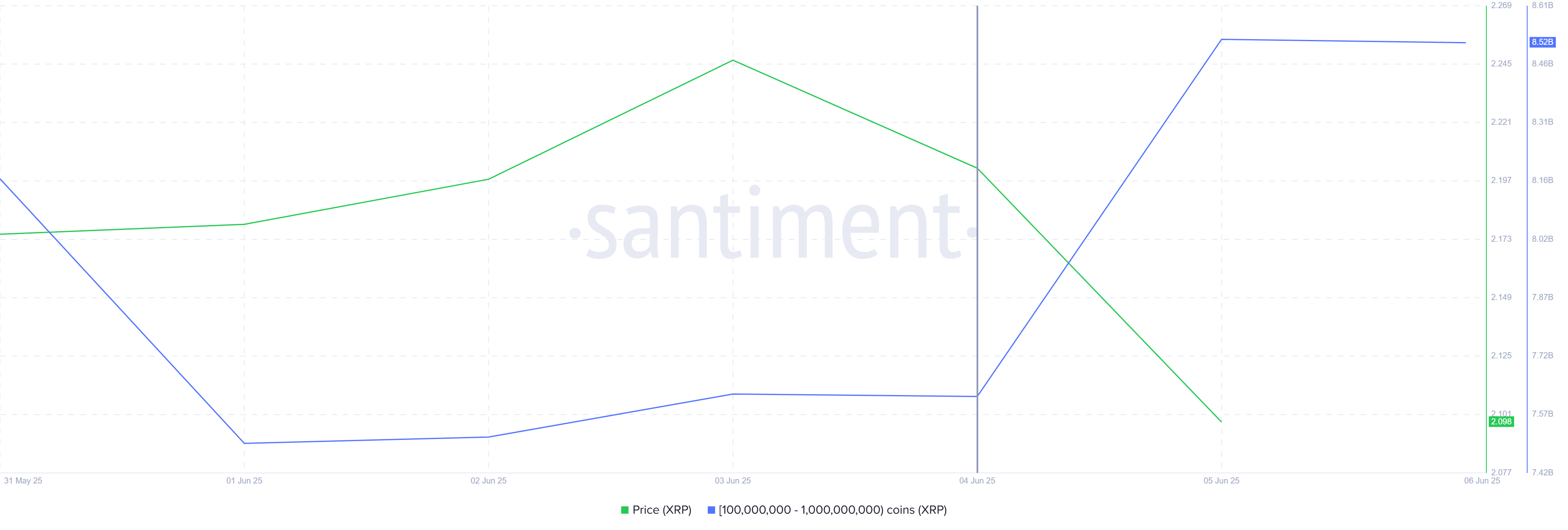XRP本周始终未能突破下跌趋势,延续了其下行态势。尽管多方试图推动上涨,但面临重重挑战,价格持续波动。目前XRP的命运或将取决于巨鲸的行动——这些大额持有者可能成为捍卫2美元关键价位的重要力量。