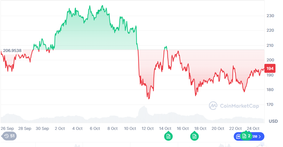 10月23日SOL小幅反弹至194美元。技术指标显示日线图正在形成突破形态,RSI维持看涨。但要确认全面突破,需站稳300美元关键阻力位。长期来看,随着机构采用增加,千美元目标并非遥不可及。