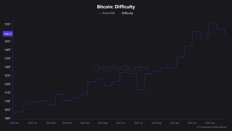 储备下降表明这部分持有者正在抛售,可能出于多重原因:首先是矿工因担心比特币价格持续下跌侵蚀利润而投降;此前高企的BTC价格也可能促使获利了结;过去12个月挖矿难度保持整体上升趋势,意味着盈利能力持续下降,矿工可能被迫出售部分代币覆盖运营成本。