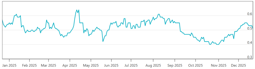 尽管看涨期权卖出量增加,市场并未呈现单边走势。IBIT期权的认沽认购比率始终低于60%。若看涨期权卖出占据主导,该比率应进一步下降。实际数据却显示市场保持平衡:既有投资者为收益卖出看涨期权,也有投资者押注价格上涨。