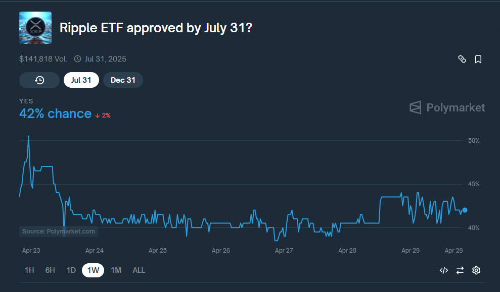 尽管SEC面临压力,但这并不意味着ETF的批准会立即开始。目前有超过70个活跃的ETF提案等待裁决,SEC需要谨慎行事以妥善处理。6月的截止日期并非最终期限,SEC可能会进一步推迟至10月中旬。在今天的延期消息公布后,Polymarket对第二季度XRP ETF批准的赔率也大幅下降。