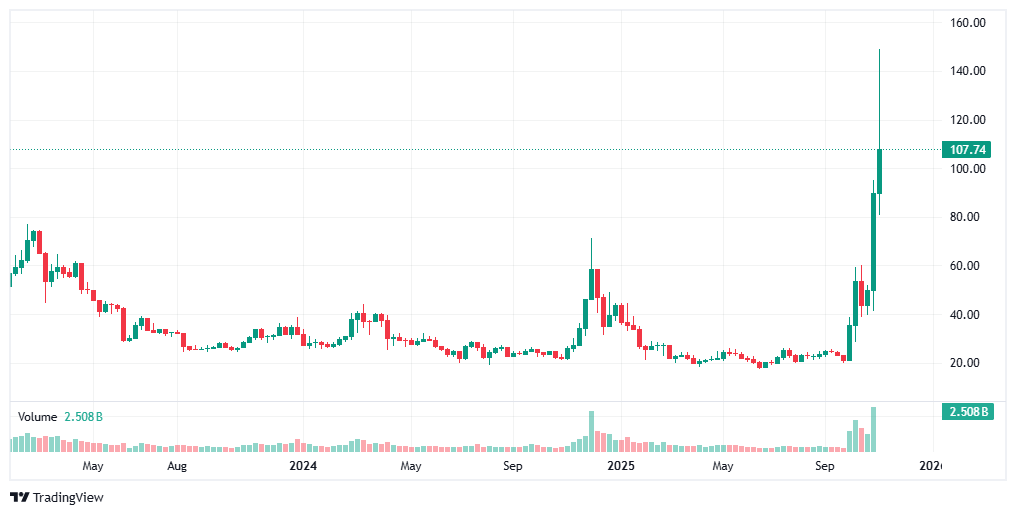 在比特币和以太坊分别下跌4.3%和10.4%的市场环境下,隐私币异军突起。零币近期表现尤为强劲,过去一个月暴涨超300%,触及2018年108美元的高位。达世币今年夏季曾跌至19美元低点,目前已强势反弹至110美元,较半年低位增长五倍,创2022年以来新高。
